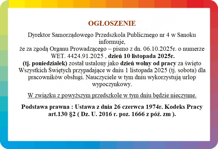 Strona została stworzona z myślą o przebywających w przedszkolu dzieciach i rodzicach. Znajdziecie tutaj Państwo informacje z życia przedszkola i przedszkolaków.