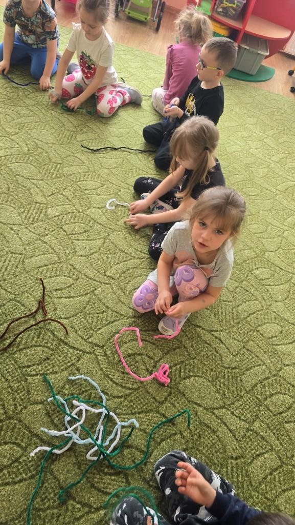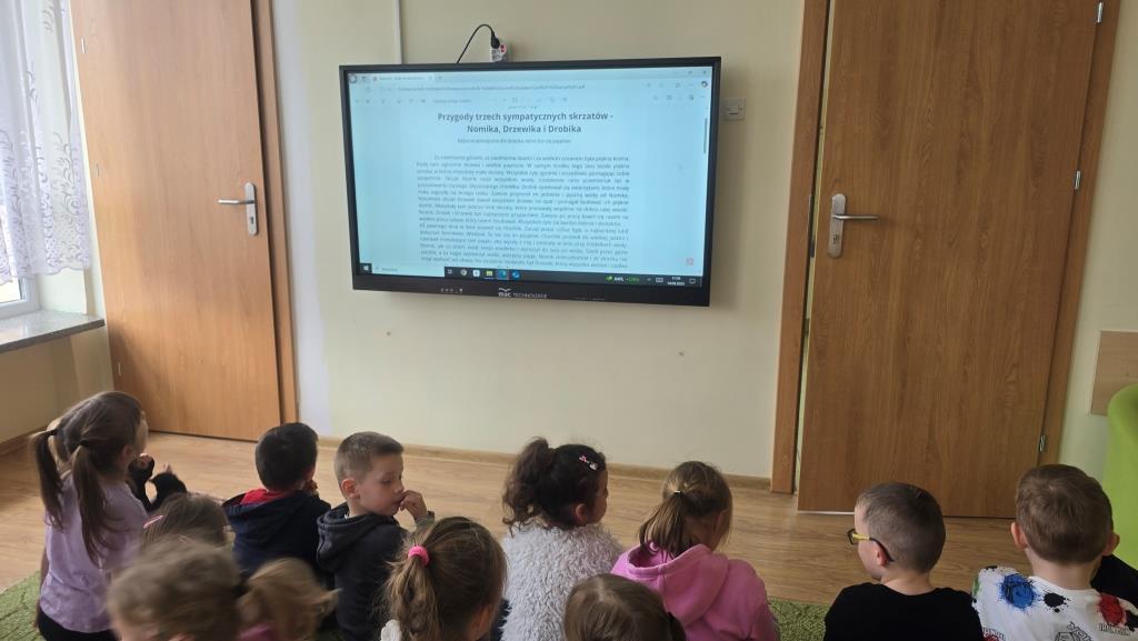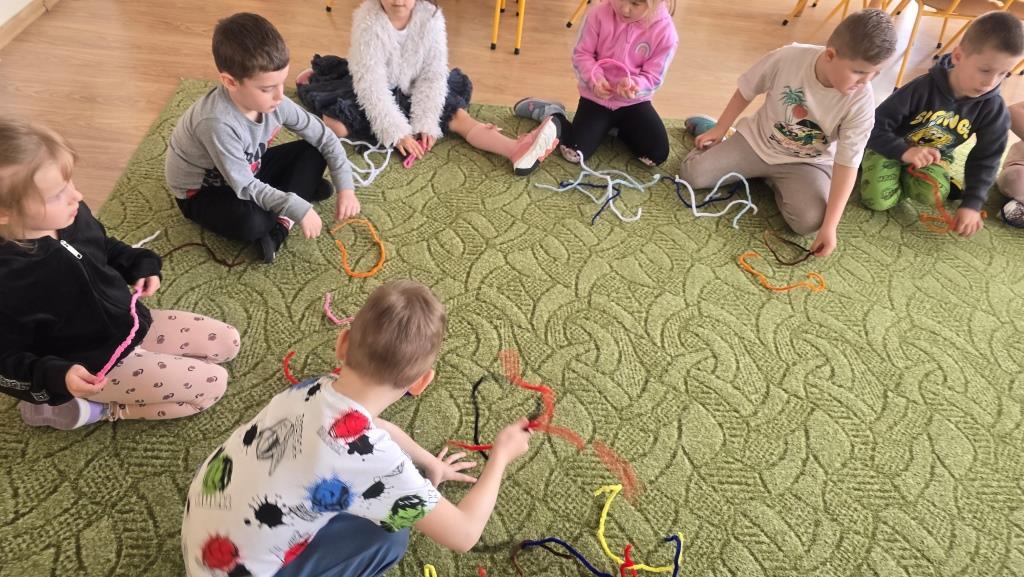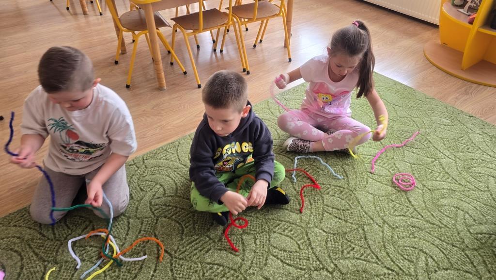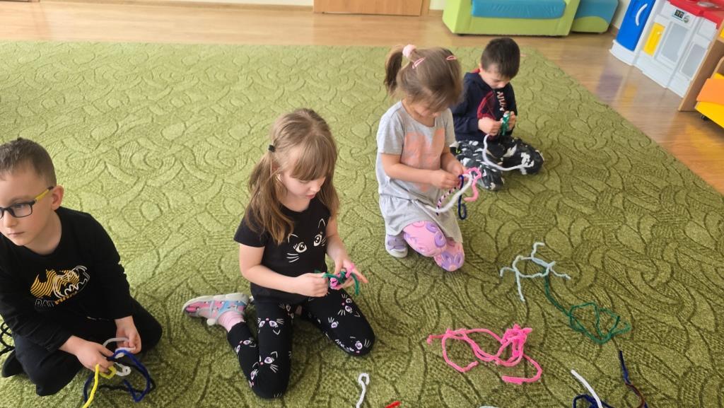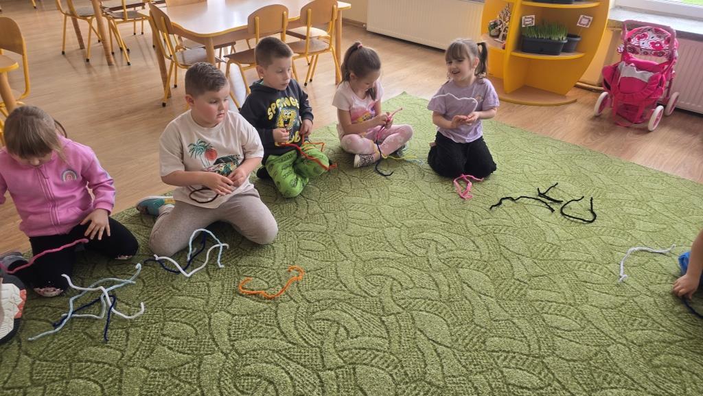 14 kwietnia grupa V poznała kolejną bajkę terapeutyczną „Przygody trzech sympatycznych skrzatów – Nomika, Drzewika i Drobika”. Dzieci dowiedziały się jak można przezwyciężyć swój strach przed pająkami i że nie są one wcale takie straszne i groźne. Na zakończenie każdy próbował zrobić swojego pajączka z drucików kreatywnych.