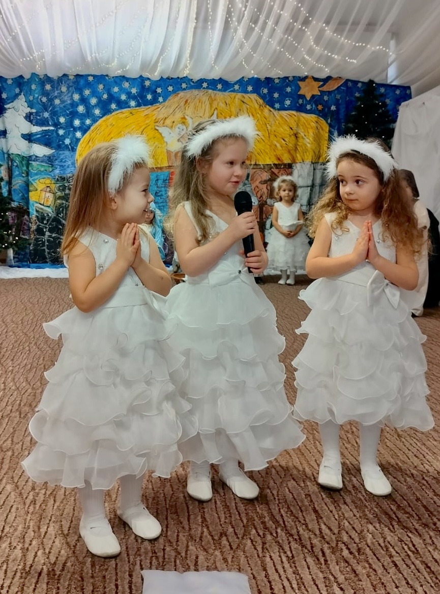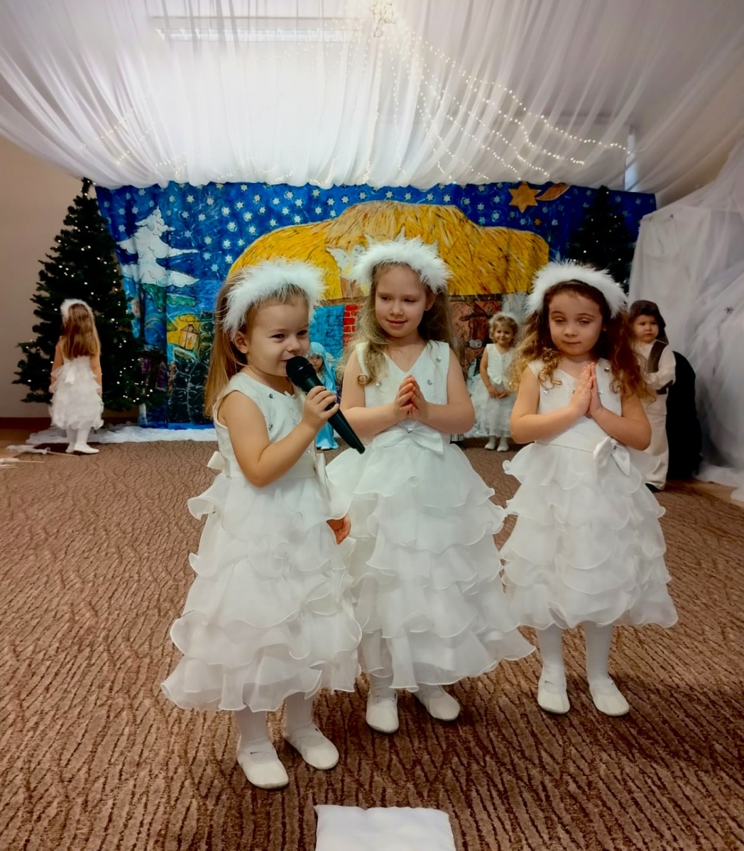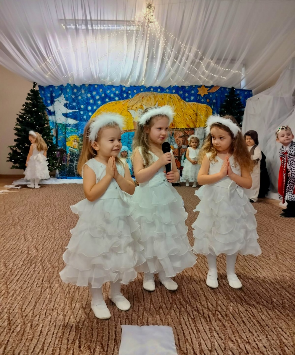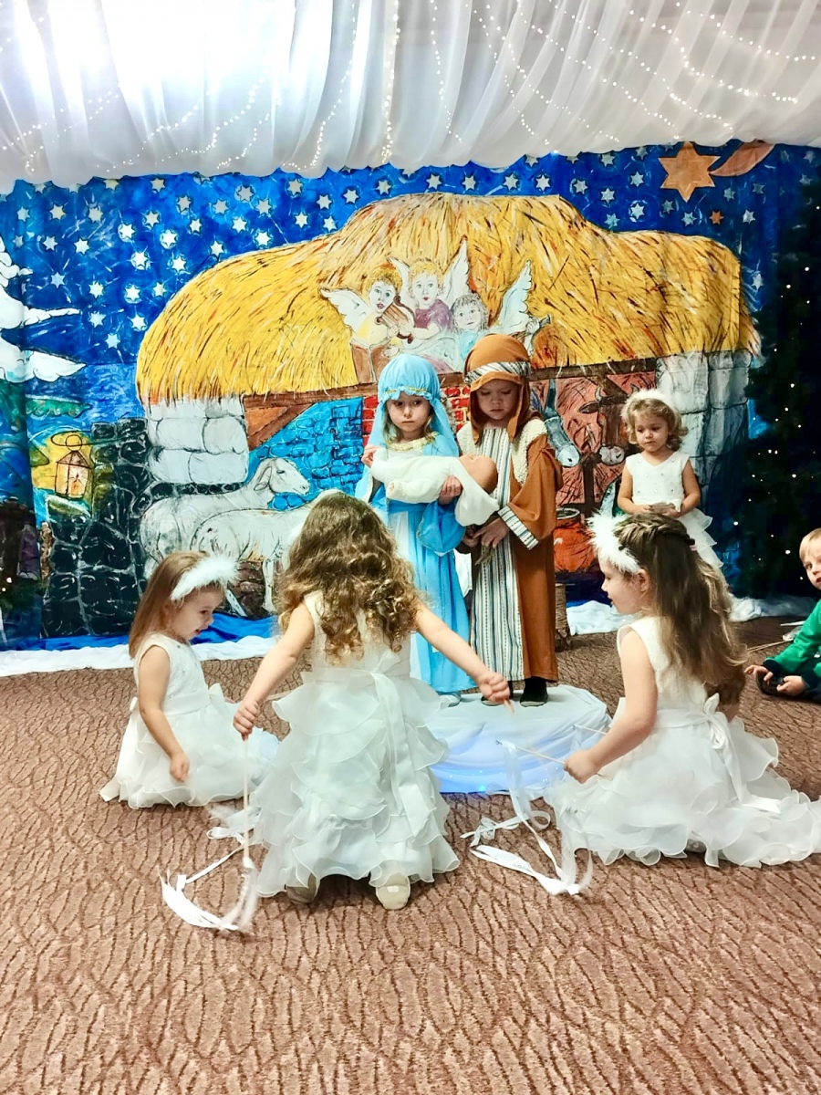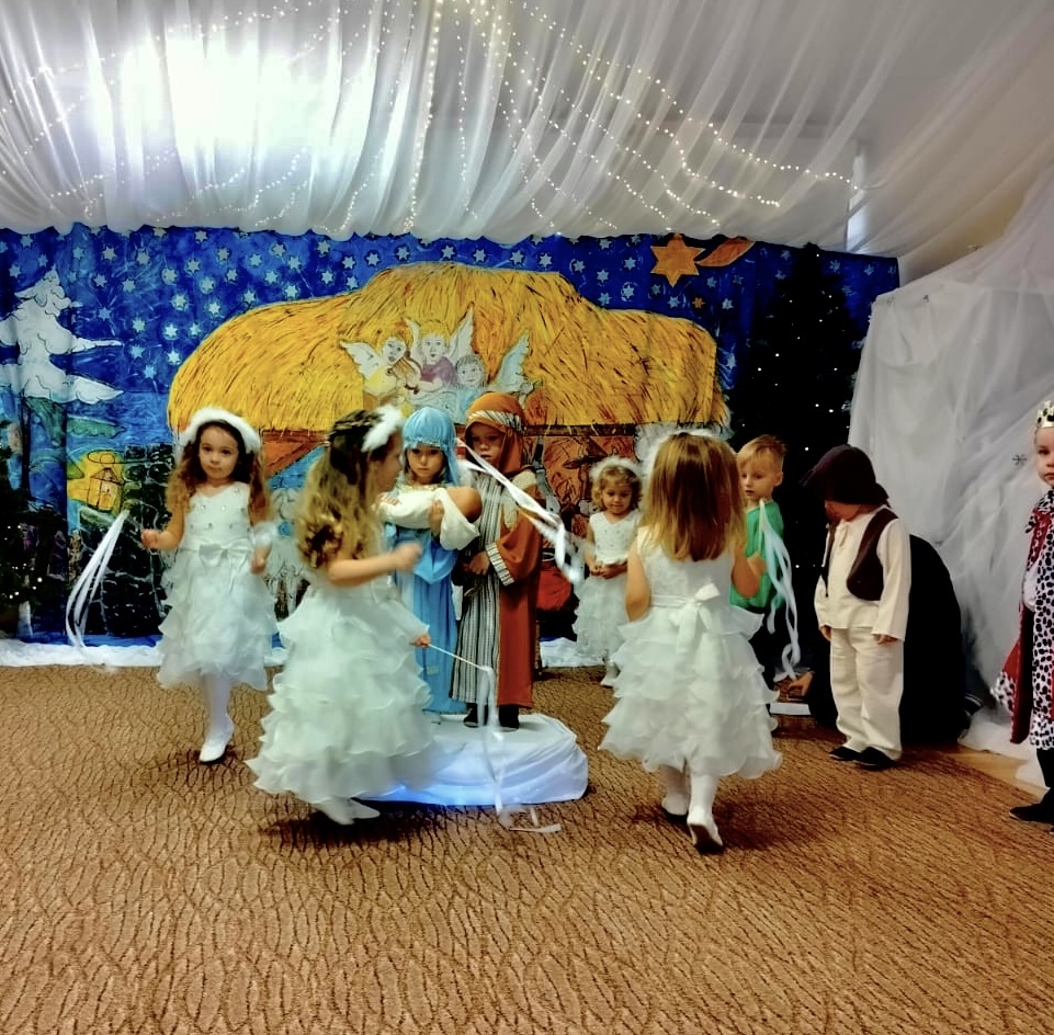 Święto Babci i Dziadzia od wielu lat wpisane jest do terminarza uroczystości organizowanych w naszym przedszkolu. Także w tym roku nasi mali artyści z zaangażowaniem przygotowywali się do nadchodzącego święta. W pięknej scenerii oraz wyjątkowej atmosferze w dniu 26.01.24 r. wnuczęta wystąpiły przed swoimi kochanymi Babciami i Dziadziusiami. Mali artyści recytowali wiersze, aniołki zatańczyły piękny taniec, dzieci zaśpiewały również pastorałkę „Aniołek maleńki jak wróbelek” a na koniec jasełkowego przedstawienia z „przytupem” 🙂 zaśpiewaliśmy „Czaczę dla Babci i Dziadka”.