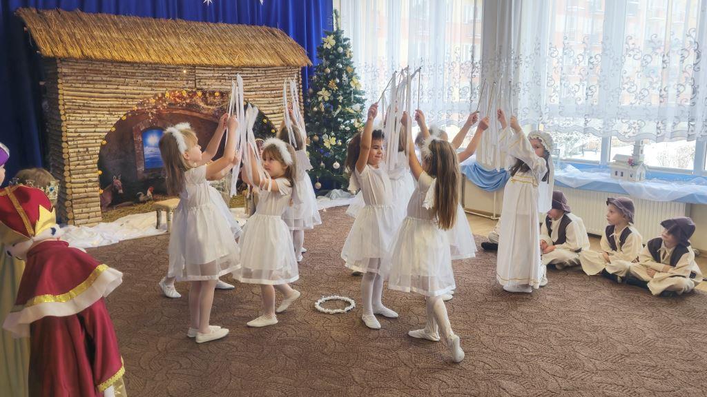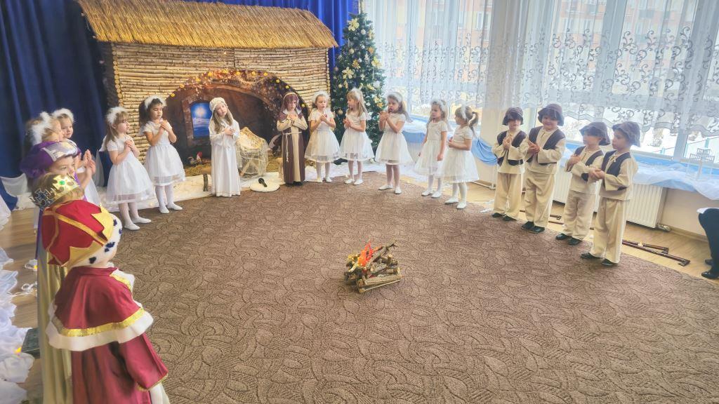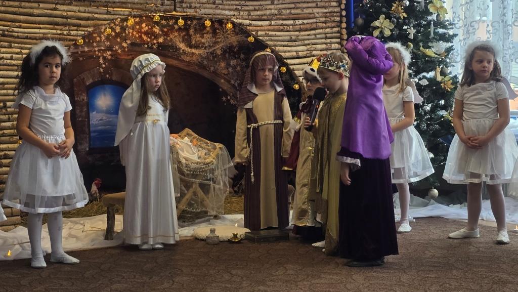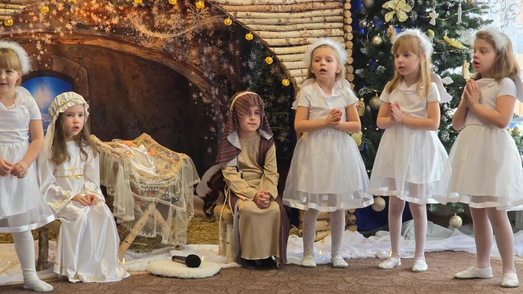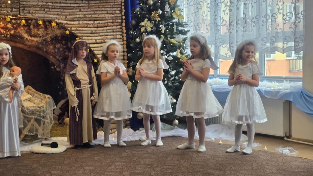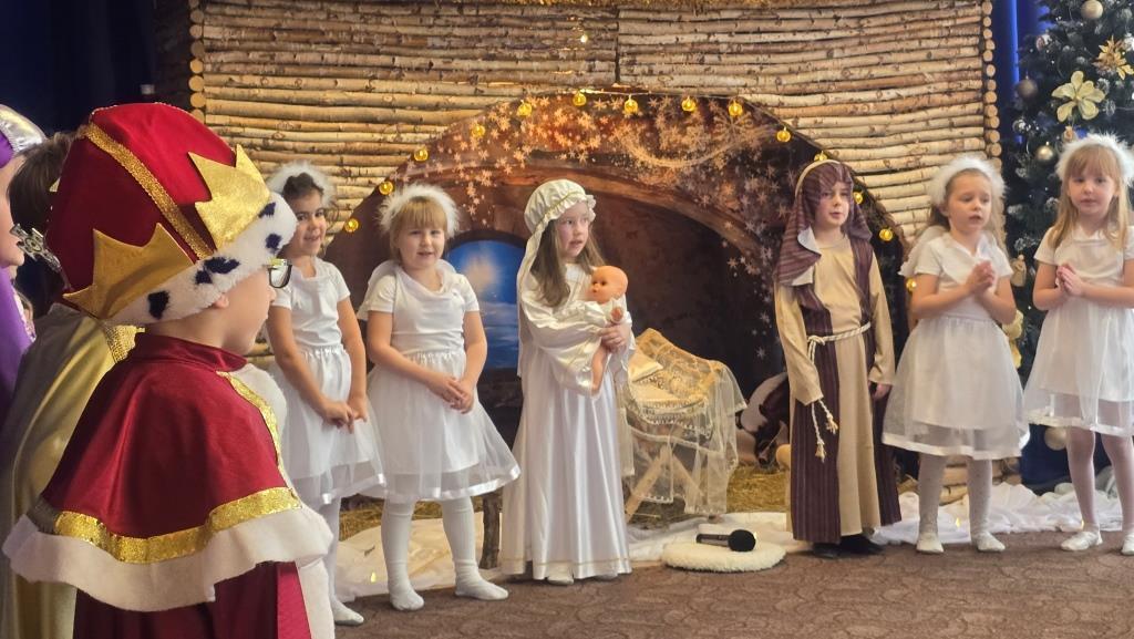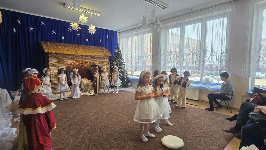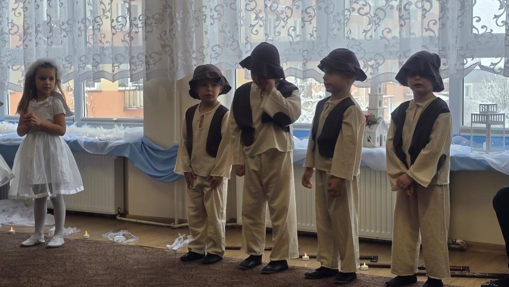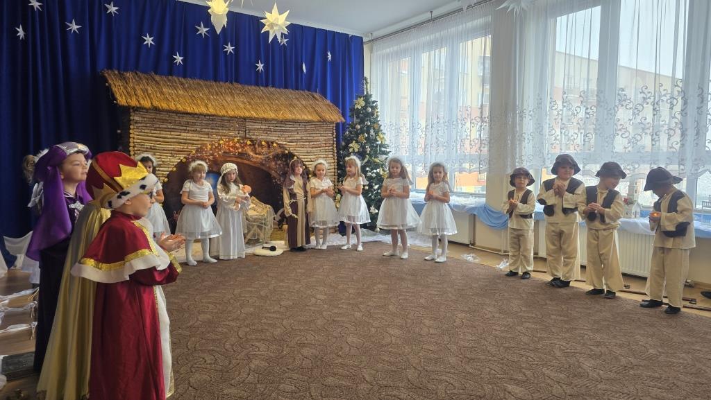 Dnia 16 stycznia z okazji dnia Babci i Dziadka nasze przedszkolaki z grupy V przygotowały przedstawienie jasełkowe dla swoich kochanych Dziadków. Recytowały wierszyki przeplatane radosnym śpiewem pastorełek i specjalnych piosenek o Babci i Dziadku. Mali artyści z wielkim zaangażowaniem prezentowali swoje umiejętności. Oczywiście nie zabrakło też własnoręcznie zrobionych upominków, które dzieci wręczyły swoim ukochanym Babciom i Dziadkom. Po przedstawieniu wszyscy udali się na wspólny poczęstunek.