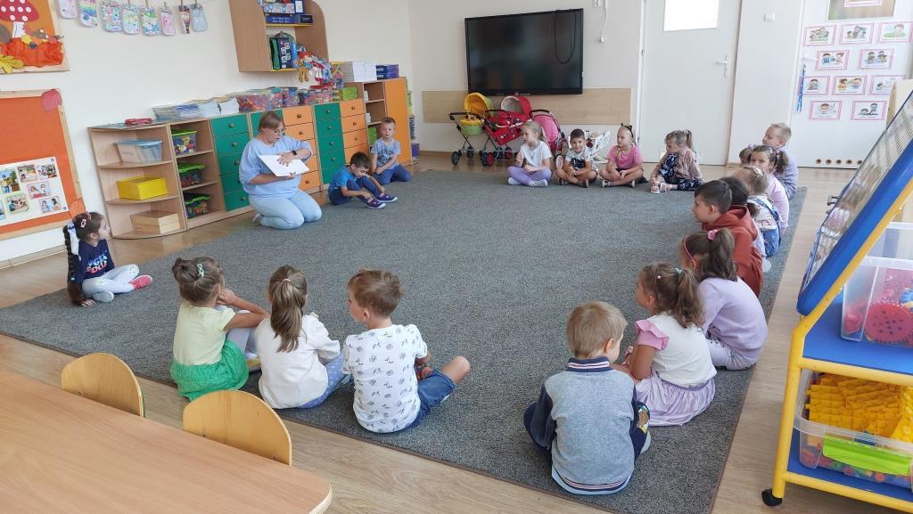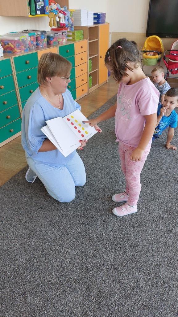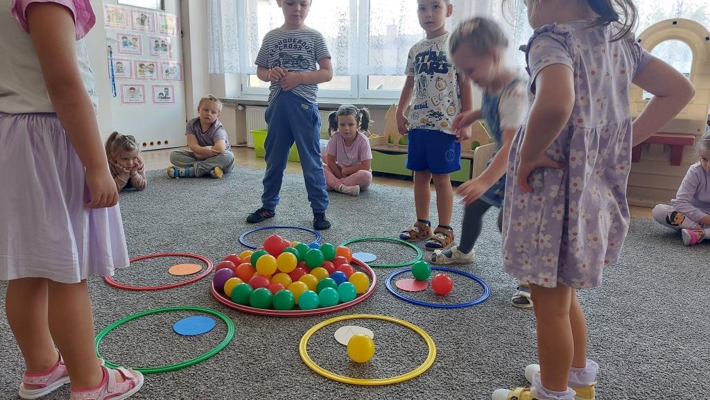 We środę 18 września 2024 r. przedszkolaki z grupy VI podjęły się realizacji pierwszego projektowego zadania Ogólnopolskiego Projektu Edukacyjnego „Zabawa Sztuką”. Z okazji Dnia kropki czyli nietypowego święta talentu, kreatywności i odwagi przedszkolaki najpierw wysłuchały interaktywnego opowiadania o pewnej kropce w roli głównej, następnie wzięły udział w zabawie muzyczno-matematycznej z kolorowymi piłeczkami, by zakończyć zajęcia wykonaniem pracy plastycznej pt. „Moja kropka”, inspirowanej zwykłą, małą kropką.