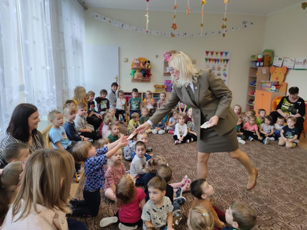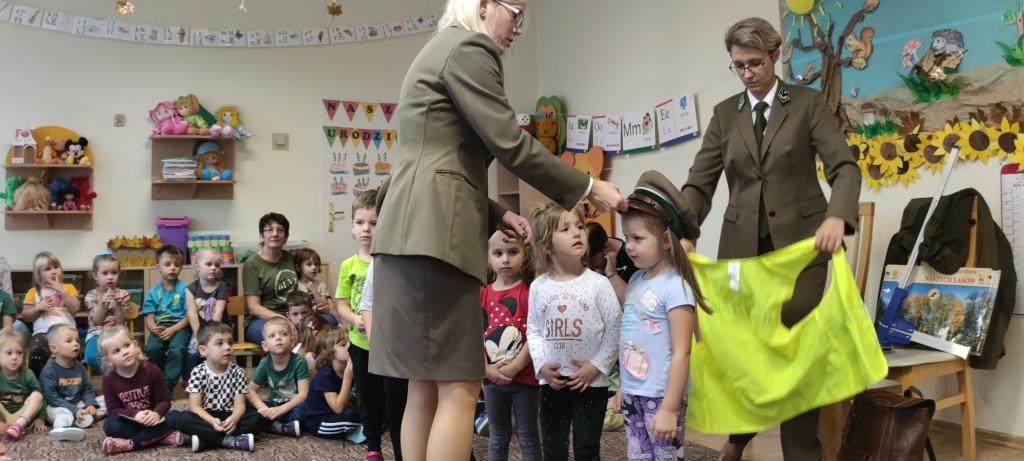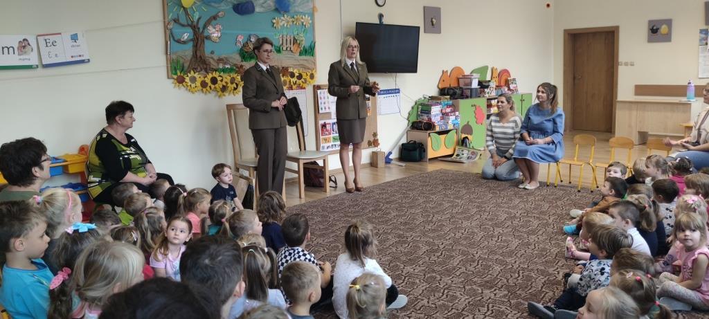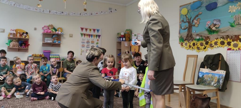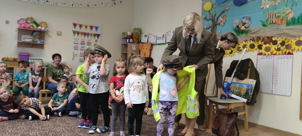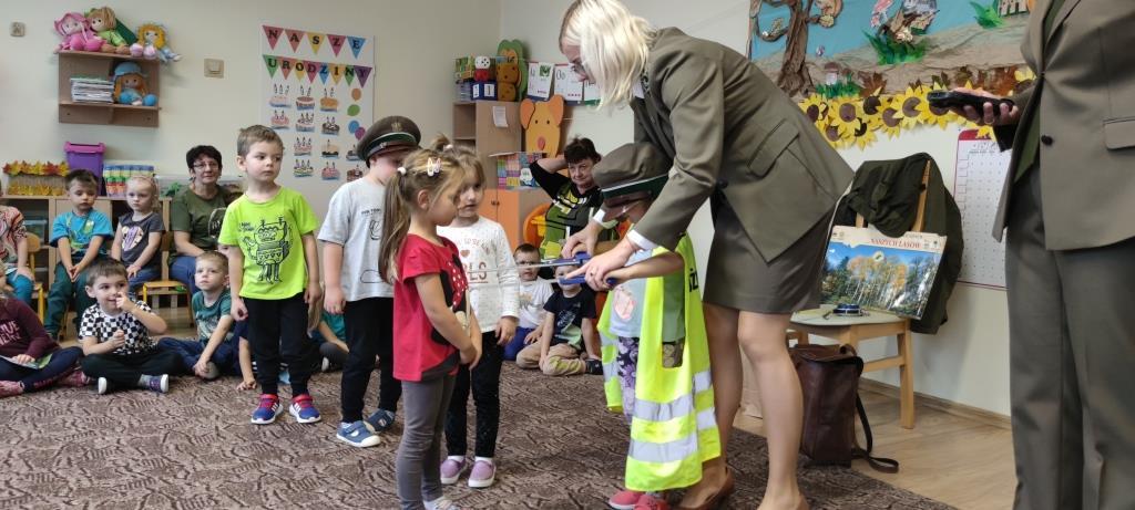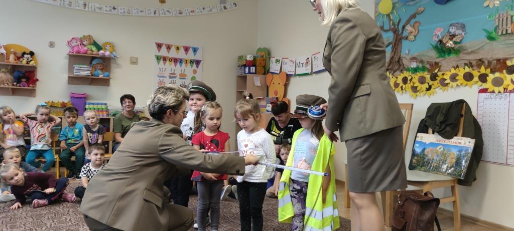 Dzia 25.10.2023r. dzieci z grup 1-4 miały okazję spotkać się z Paniami leśnikami, które dbają o dobro zwierząt i roślin w lesie. Panie, z aktywną pomocą dzieci, opowiedziały na czym polega ich praca. Część dzieci zmieniła się w leśników i drzewa, dzięki czemu nauczyły się, jak dokonuje się pomiarów w lesie, a także zobaczyły sprzęty, jakimi posługują się leśnicy w codziennej pracy. Na koniec, Panie udzieliły nam wskazówek, w jaki sposób sposób odpowiedzialnie dokarmiać zwierzęta, a także zachęciły do rodzinnych spacerów po lesie, w celu poprawy odporności.