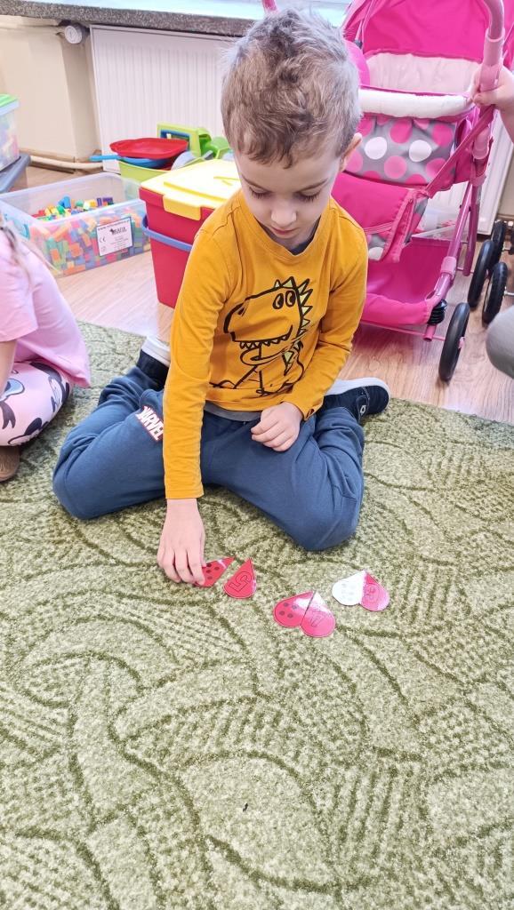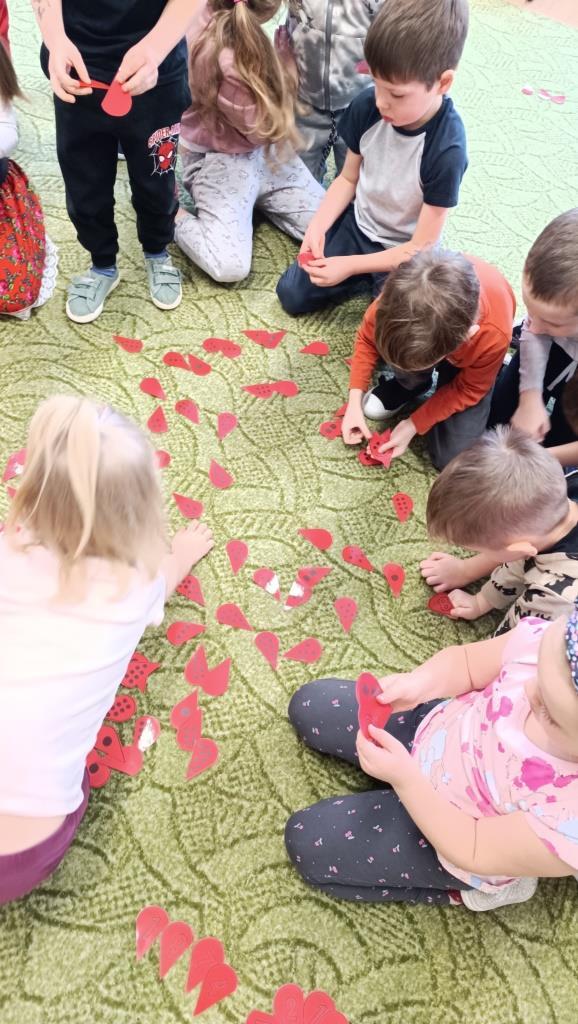 14 lutego to wyjątkowa, dlatego dzieci z gr.V postanowiły również świętować Walentynki. Zrobiły to dość oryginalnie, bo ucząc się liczenia i utrwalając zapisy cyfrowe poznanych dotąd liczb. Żeby zapałać miłością do matematyki, przedszkolakom w tej nauce pomogły serduszka i inne symbole, kojarzące się z miłością. Dzieci miały za zadanie znaleźć drugą połowę matematycznych serduszek, a także dopasować ilość „miłosnych” obrazków do odpowiedniego zapisu cyfrowego. Na koniec zajęć dzieci z gr.V wykonały piękne „walentynki” z papierowych talerzyków. Nie zabrakło też dzisiaj rozmowy o tym, co to jest miłość i co znaczy „kochać kogoś”. Zrozumienie milości przez dzieci jest naprawdę piękne, a wiekszość z nich na pytanie „kogo kochasz najbardziej?” odpowiadała „mamę i tatę”, co nas dorosłych napawa wielkim optymizmem.