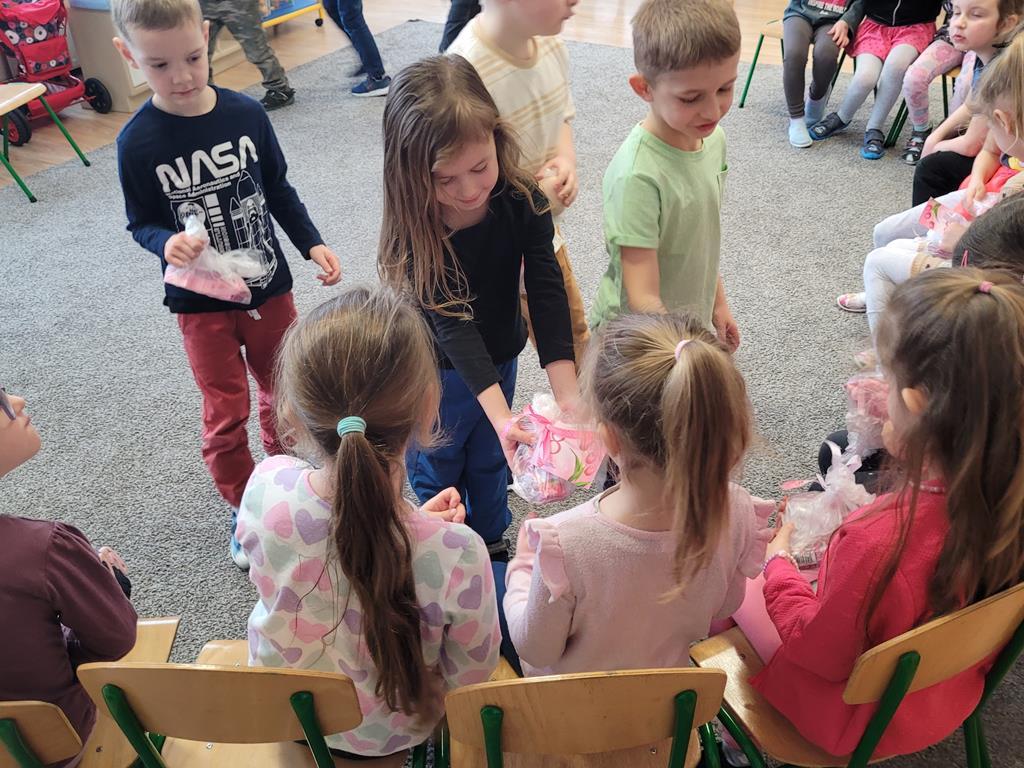 W dniu 08.03.2024r. dzieci z gr. VI zakończyły tydzień zajęć o tematyce wiosennej. Dzieci zapoznały się z planem pracy „Małego ogrodnika” i wspólnie z nauczycielem zasadziły w kąciku przyrody fasolkę, cebulkę i aksamitki. Oglądały nasiona i zdobyły wiedzę na temat etapów rozwoju m.in. cebuli czy fasoli. Były rozmowy poparte ilustracjami na temat wiosennej pogody, zilustrowaliśmy powiedzenie „W marcu, jak w garncu”, wykonywaliśmy doświadczenia z nasionami i świetnie bawiliśmy się rozwijając swoją sprawność ruchową. Na koniec tygodnia chłopcy zrobili dziewczynkom miłą niespodziankę i z okazji Dnia Kobiet wręczyli im przygotowane wspólnie z rodzicami prezenty! Radość i zaskoczenie było ogromne! Dziękujemy i cieszymy się ze wspólnie spędzonych miłych chwil w przedszkolu.