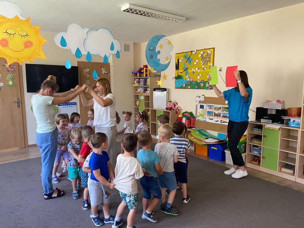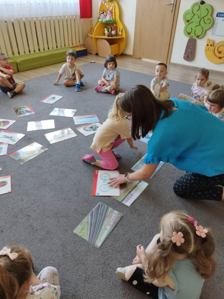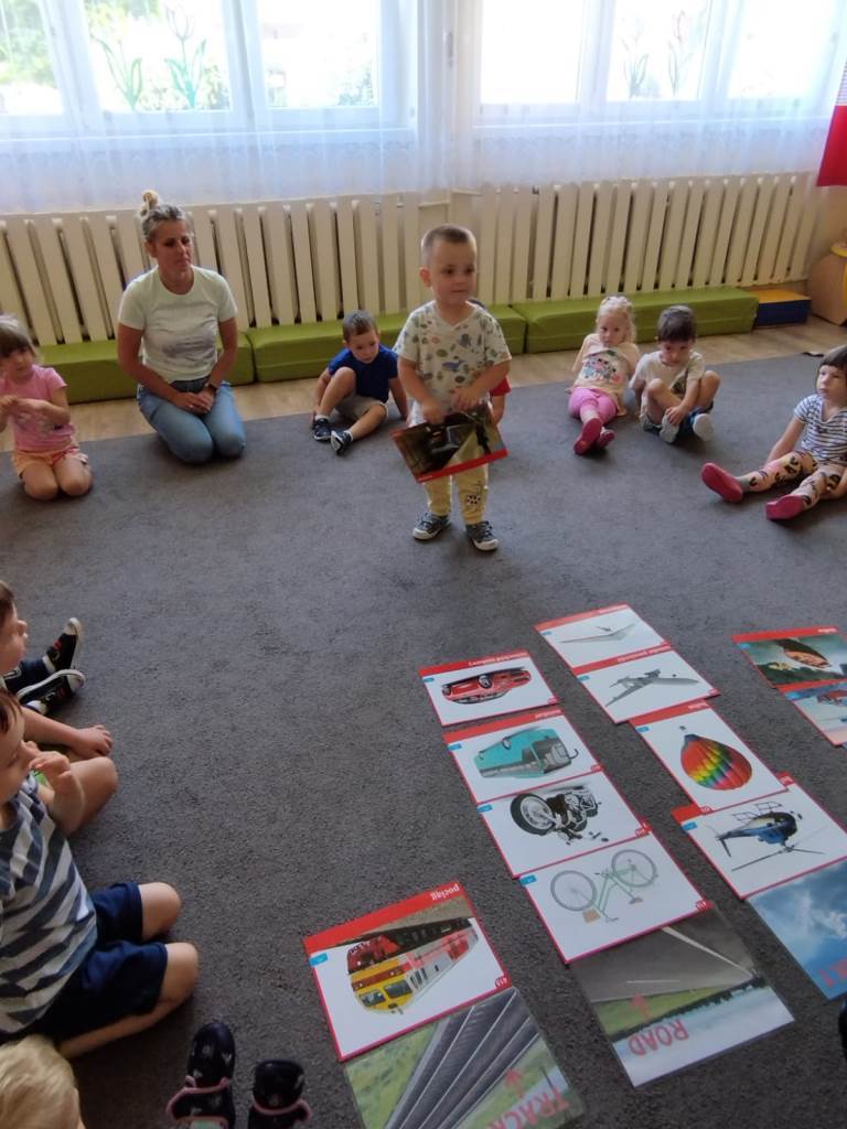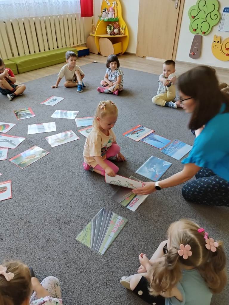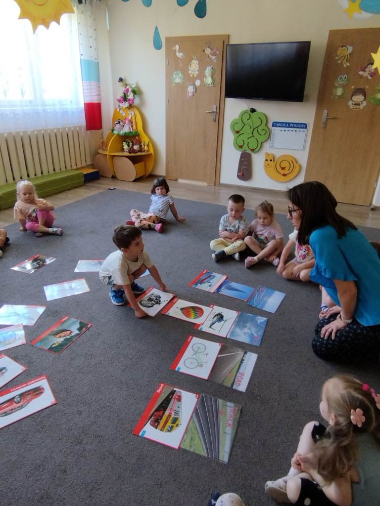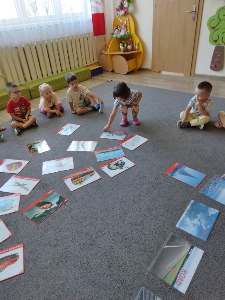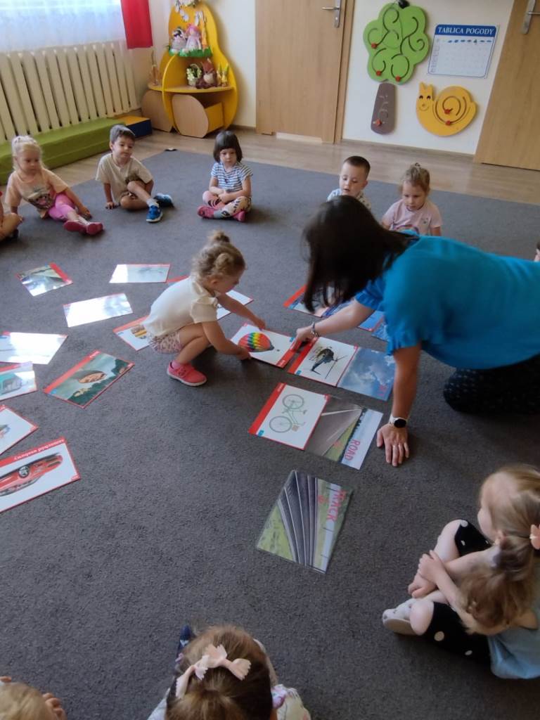 Zbliża się lato, czas odpoczynku i wyjazdów wakacyjnych. Dlatego dzisiaj na zajęciach udaliśmy się w wyimaginowaną wakacyjną podróż. Na początek dzieci wysłuchały opowiadania pt.: „Czym podróżujemy?” i odpowiadały na pytania dotyczące tekstu. Następnie przedszkolaki utrwalały różne pojęcia matematyczne: segregowały pojazdy, określały położenie samolotów względem chmur, nazywały i dopasowywały figury geometryczne, utrwalały pojęcia szybko, wolno, szybciej i najszybciej. Nie zabrakło też zabaw ruchowych: „Jak się podróżuje… (samolotem, samochodem, itd.)? oraz „Jedzie pociąg”, podczas której zadaniem „pociągów” było reagowanie na sygnał nauczycielki.