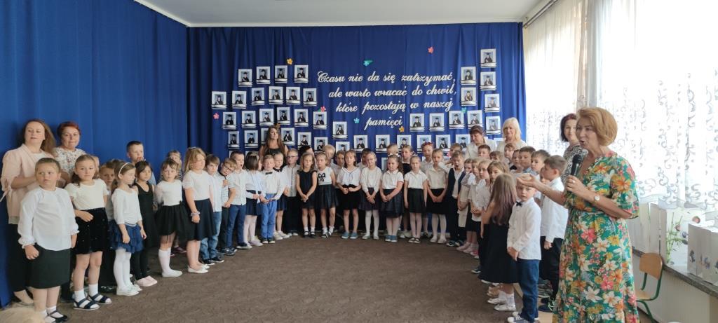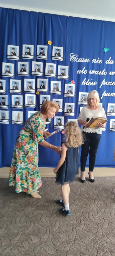 Następnie głos zabrała Pani Dyrektor Mariola Milewska, która podsumowała przedszkolne życie starszaków, podziękowała paniom nauczycielkom za pracę z dziećmi oraz wręczyła dyplomy i upominki każdemu absolwentowi.