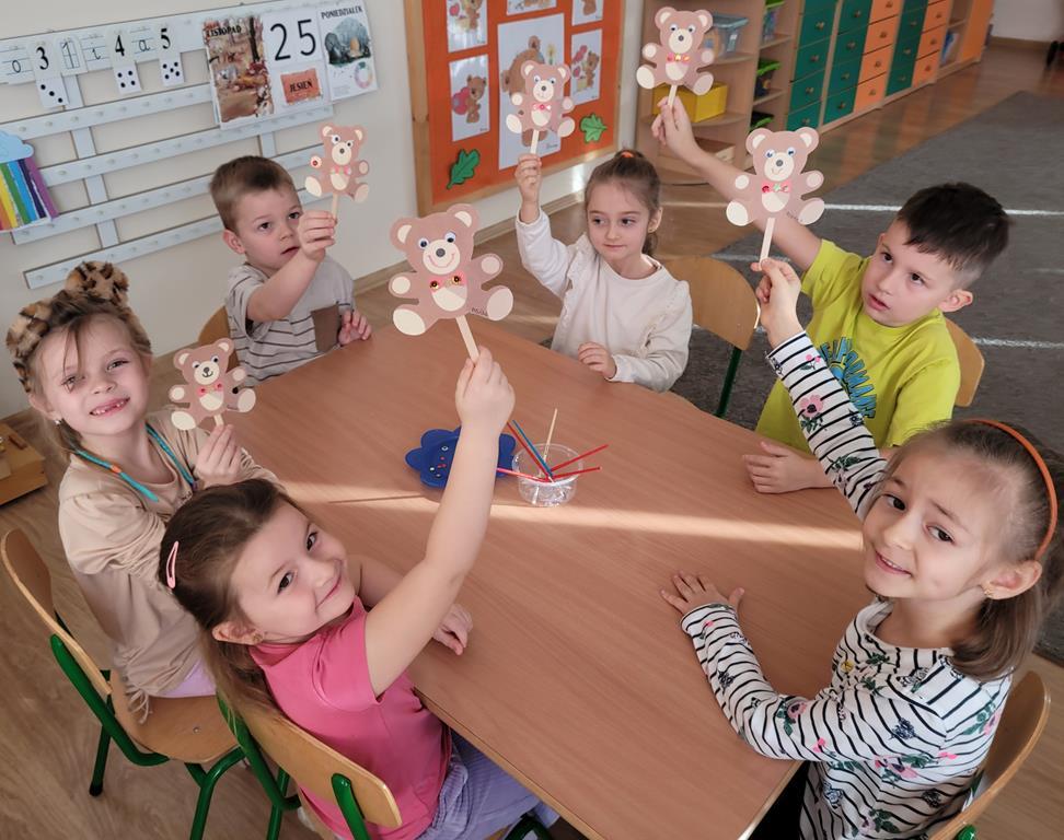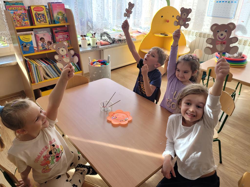 W dniu 25.11.2024r. grupa VI obchodziła wyjątkowe święto! Dzień Pluszowego Misia, ukochanego przyjaciela wszystkich dzieci! Przedszkolaki wspólnie ze swoimi pluszakami obejrzały historię pluszowego misia, uczestniczyły w zabawach rozwijających motorykę małą i dużą, w zabawach muzycznych z piłeczkami i chustą animacyjną, nakarmiły misie, gdy były głodne, ukołysały pluszaki do snu, a na koniec wykonały misie z kolorowego papieru i patyczków drewnianych. Święto to, ma na celu przypomnienie o roli, jaką ta zabawka odgrywa w życiu dzieci i dorosłych na całym świecie, a także uczy empatii i szacunku.
