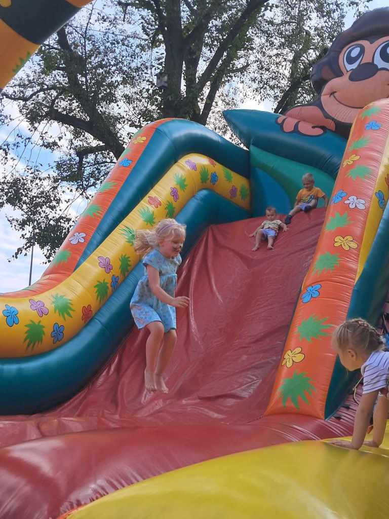 W dniu 17.09. b.r. w naszym przedszkolu odbyło się „Święto Pieczonego Ziemniaka”. Z tej okazji w ogrodzie przedszkolnym zorganizowany został piknik, podczas którego każdy smakosz ziemniaka, mógł skosztować go pod wieloma postaciami, np. frytek, pieczonych ziemniaczków czy placuszków ziemniaczanych. Na przybyłych gości czekało wiele atrakcji, nie tylko kulinarnych, ale także kulturalnych, ruchowych i artystycznych. Dzieci mogły m.in. poskakać na dmuchawcach, pooglądać najprawdziwszy traktor czy przejechać się na kucyku, jak również ozdobić swoją twarz pięknymi rysunkami, włosy kolorowymi warkoczykami, a ręce samodzielnie wykonanymi bransoletkami z koralików.