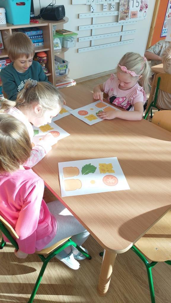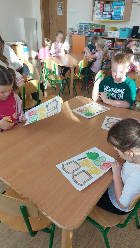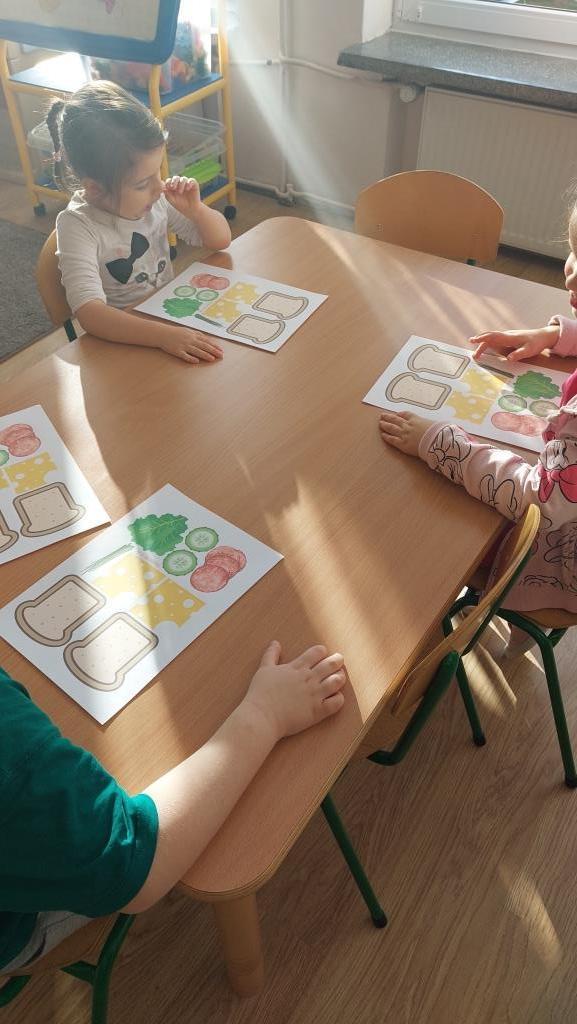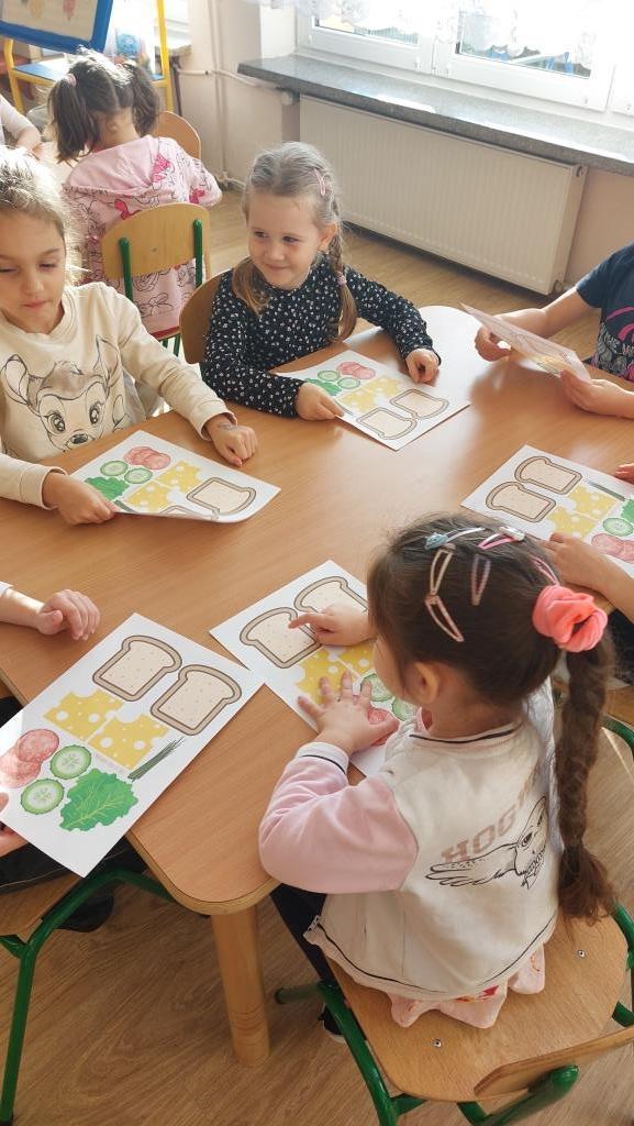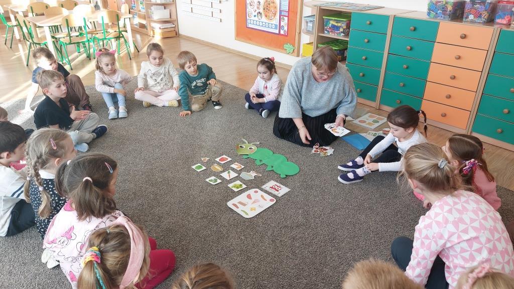 W poniedziałek 18 listopada przedszkolaki z grupy VI realizowały pierwsze zadanie projektu edukacyjnego „Zdrowo jem, więcej wiem”. Dzieci na zajęciach najpierw wysłuchały opowiadania o pewnej bardzo głodnej gąsienicy. Następnie wspólnie zastanawialiśmy się jakie skutki ma nadmierne i niezdrowe objadanie się i do czego prowadzi. Aby pomóc gąsienicy dzieci postanowiły ułożyć dla niej zdrowe menu. Na koniec przedszkolaki skomponowały dla gąsienicy zdrową, pełnowartościową kanapkę. Celem zajęć było uświadomienie dzieciom do czego może prowadzić nadmierne objadanie się oraz niezdrowy styl życia.