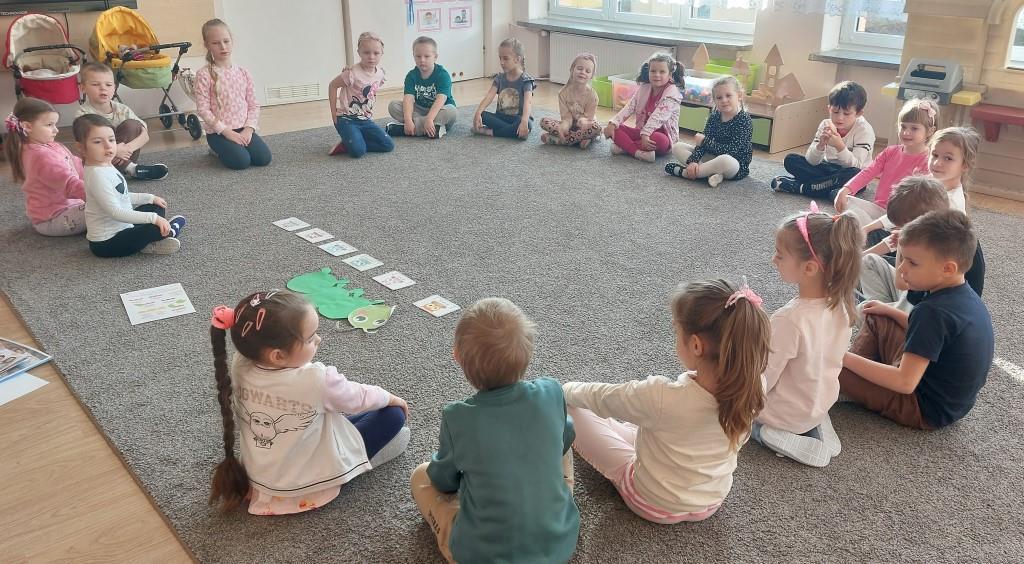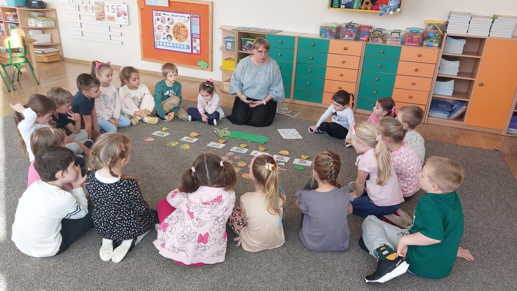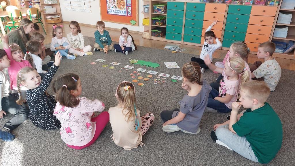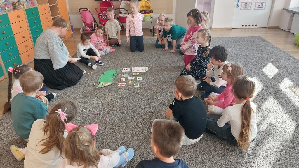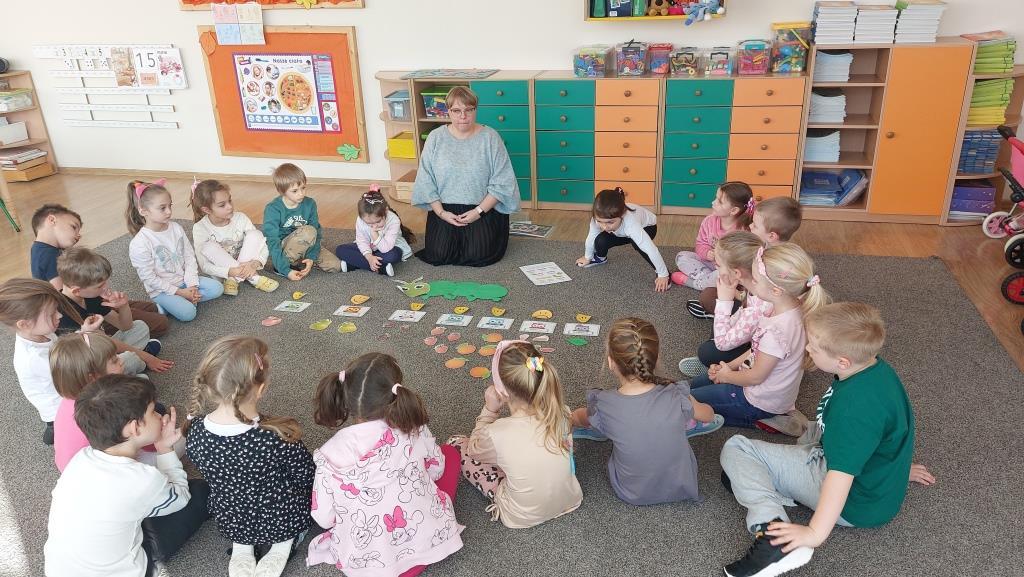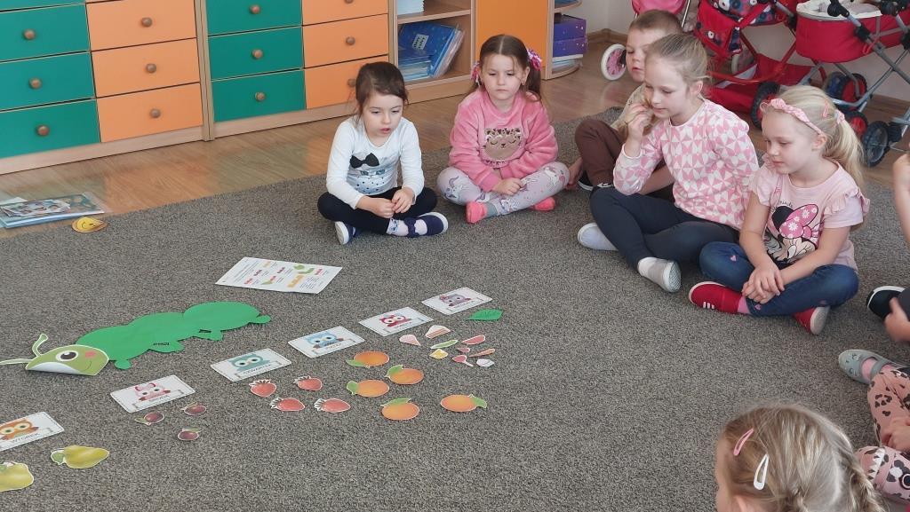W poniedziałek 18 listopada przedszkolaki z grupy VI realizowały pierwsze zadanie projektu edukacyjnego „Zdrowo jem, więcej wiem”. Dzieci na zajęciach najpierw wysłuchały opowiadania o pewnej bardzo głodnej gąsienicy. Następnie wspólnie zastanawialiśmy się jakie skutki ma nadmierne i niezdrowe objadanie się i do czego prowadzi. Aby pomóc gąsienicy dzieci postanowiły ułożyć dla niej zdrowe menu. Na koniec przedszkolaki skomponowały dla gąsienicy zdrową, pełnowartościową kanapkę. Celem zajęć było uświadomienie dzieciom do czego może prowadzić nadmierne objadanie się oraz niezdrowy styl życia.
