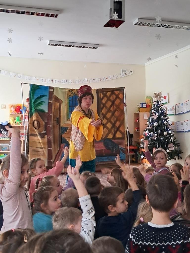 11 stycznia 2024 roku, nasze przedszkole odwiedził teatr żywego aktora KrakArt z przedstawieniem pt. „Alladyn”. Dzieci miały okazję poznać historię chłopca, który po spotkaniu z Czarodziejem stał się posiadaczem magicznej lampy, w której mieszkał Dżin spełniający życzenia. Dzieci czynnie brały udział w spektaklu, który wzbudził w nich wiele różnych emocji. Na sam koniec nie zabrakło oczywiście morału, który był zwieńczeniem całej historii.