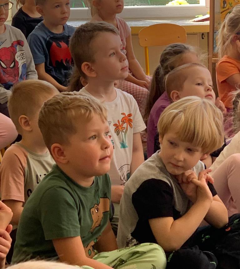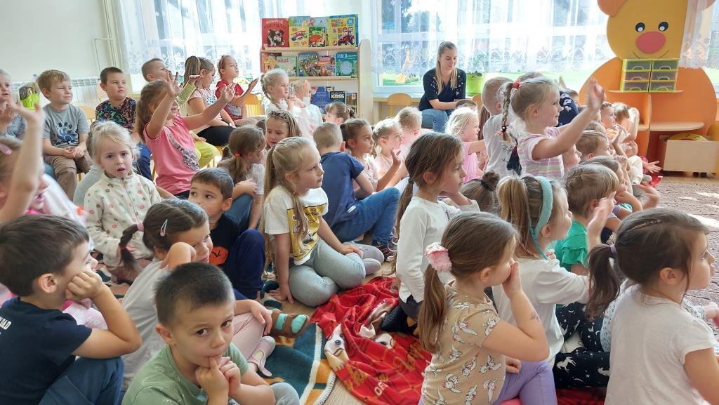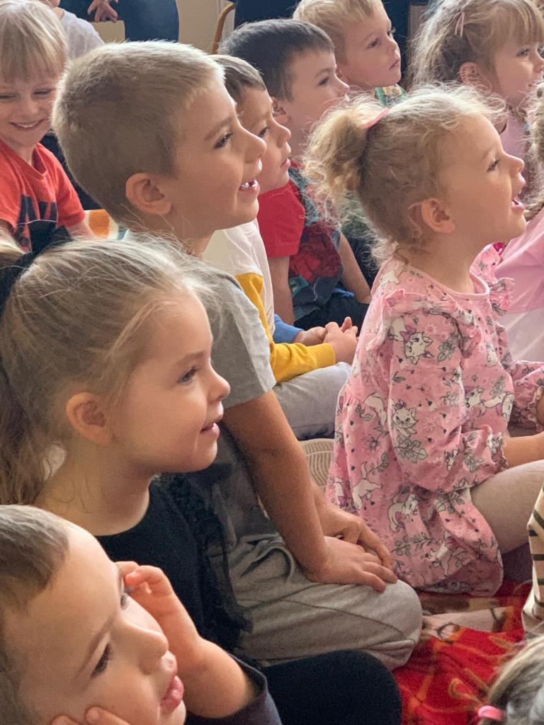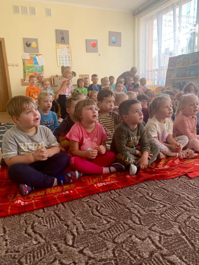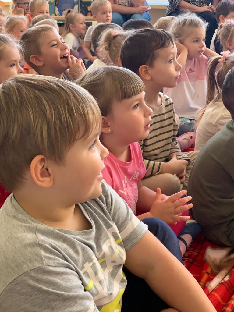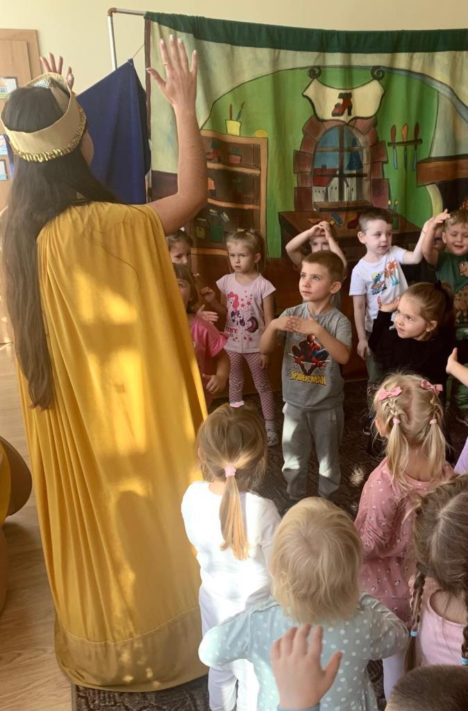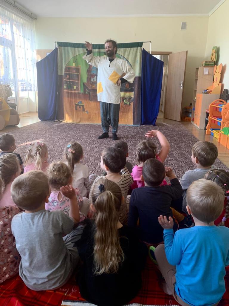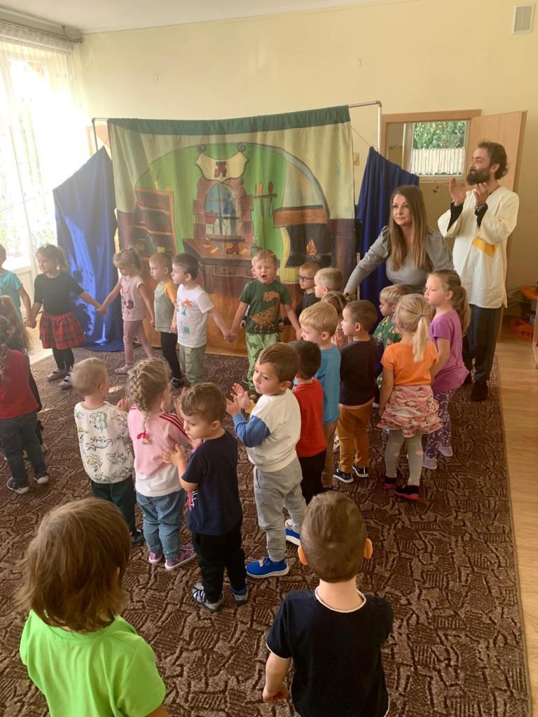 We czwartek 10 października nasze przedszkole odwiedził teatr żywego aktora z Krakowa „Krak-art”. Dzieci ze wszystkich grup przedszkolnych obejrzały przedstawienie w inscenizacji znanej bajki pt. „Złota Kaczka”. Bajka treścią nawiązywała do starej, znanej krakowskiej legendy. Przedszkolaki z dużym zaciekawieniem obejrzały spektakl, w którym również uczestniczyły tańcząc, klaskając i odgadując następujące po sobie sceny. Pomagały przywoływać postacie oraz zapytane, podpowiadały co należy zrobić w zaistniałej sytuacji. Bajka zakończyła się szczęśliwie a dzieci utrwaliły sobie zasadę, że dobrze jest dzielić się z innymi, a także warto być dla siebie uprzejmym. Inscenizacja bajki sprawiła dzieciom wiele radości i wywołała uśmiech na niejednej twarzy.