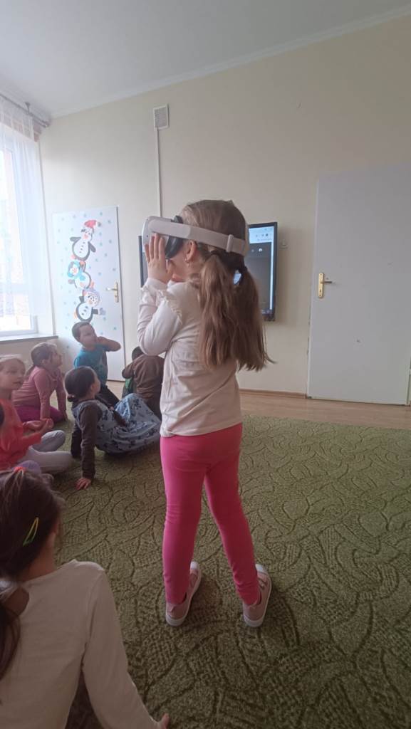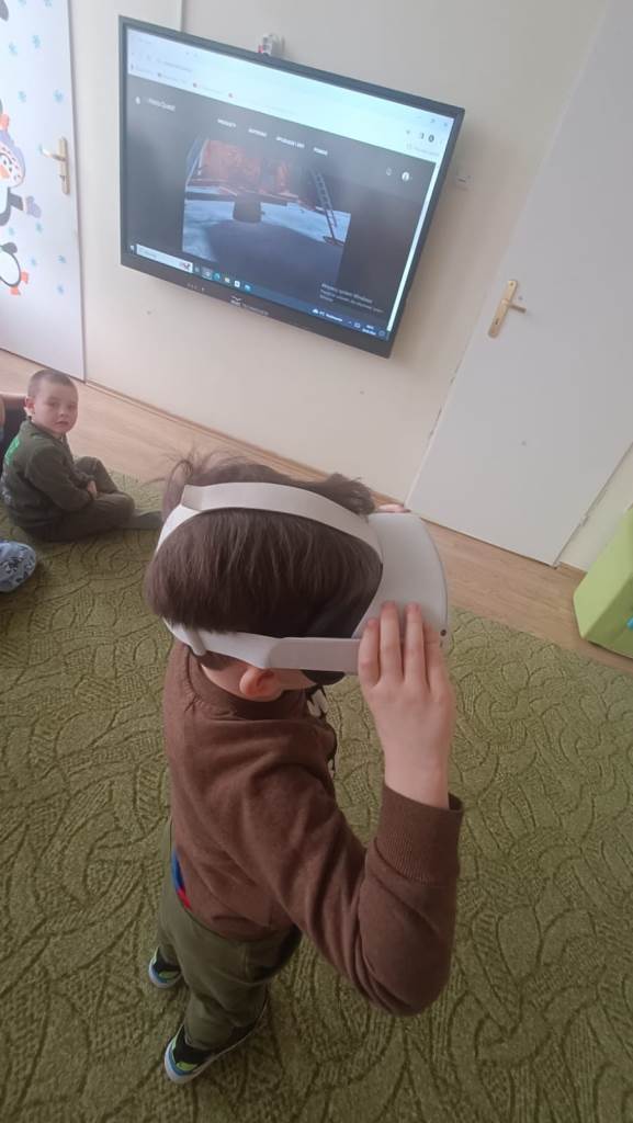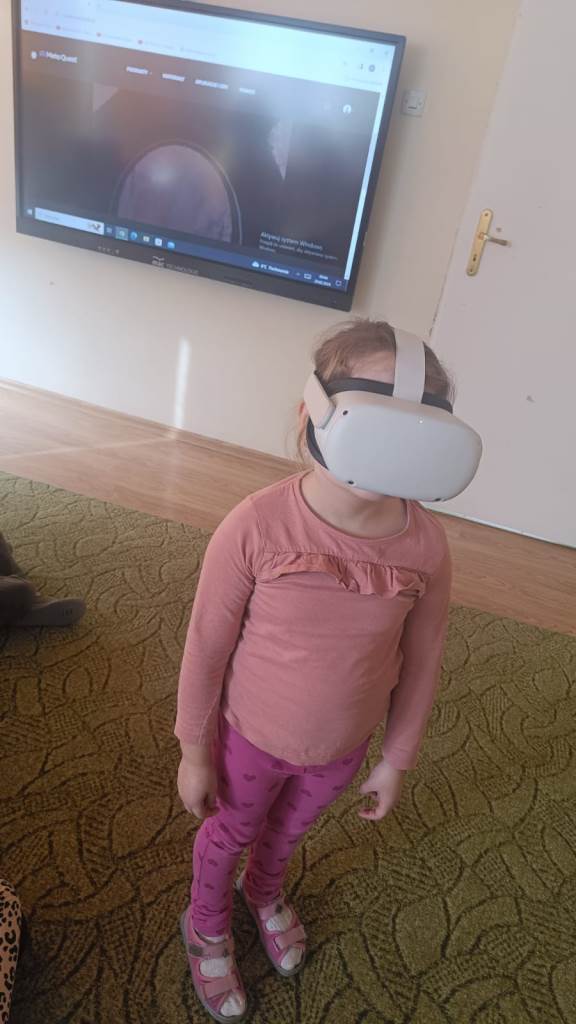 Dzięki nowoczesnej technologii i Okularom VR, dzieci z gr.V mogły uczestniczyć w niesamowitej przygodzie, jaką jest podróż do wirtualnej rzeczywistości. Przedszkolaki w dniu 29.02.2024r. uczestniczyły w zajęciach, podczas których zwiedziły kosmos. Byli na księżycu, Marsie, w kopule stacji kosmicznej oraz mieli okazję zobaczyć Drogę Mleczną czy położenie planet w układzie słonecznym. Dowiedzieli się dlaczego na jednej półkuli Ziemi jest dzień a na drugiej noc, widzieli też Polskę widzianą z kosmosu. Dzisiejsze zajęcia z wykorzystaniem Okularów VR, bardzo podobały się naszym małym astronautom.