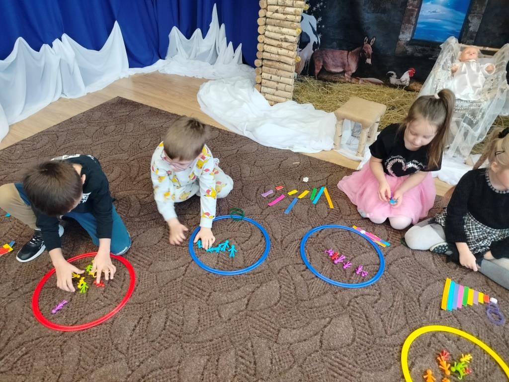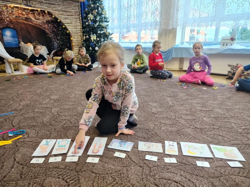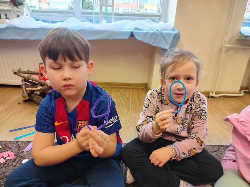 Dzieci z gr. VII podczas zajęć poznały liczbę 9. Zapoznały się z zapisem graficznym liczby, próbowały ją ułożyć z drucików kreatywnych. Na podstawie obrazków przedstawiających rodzinę przeliczały do 9 posługując się liczebnikami porządkowymi, dopasowywały odpowiednie poznane już cyfry. Tworzyły zbiory dopełniając do 9. Wykonały pracę plastyczną wykonując cyfrę 9 z masy solnej i drucików.
