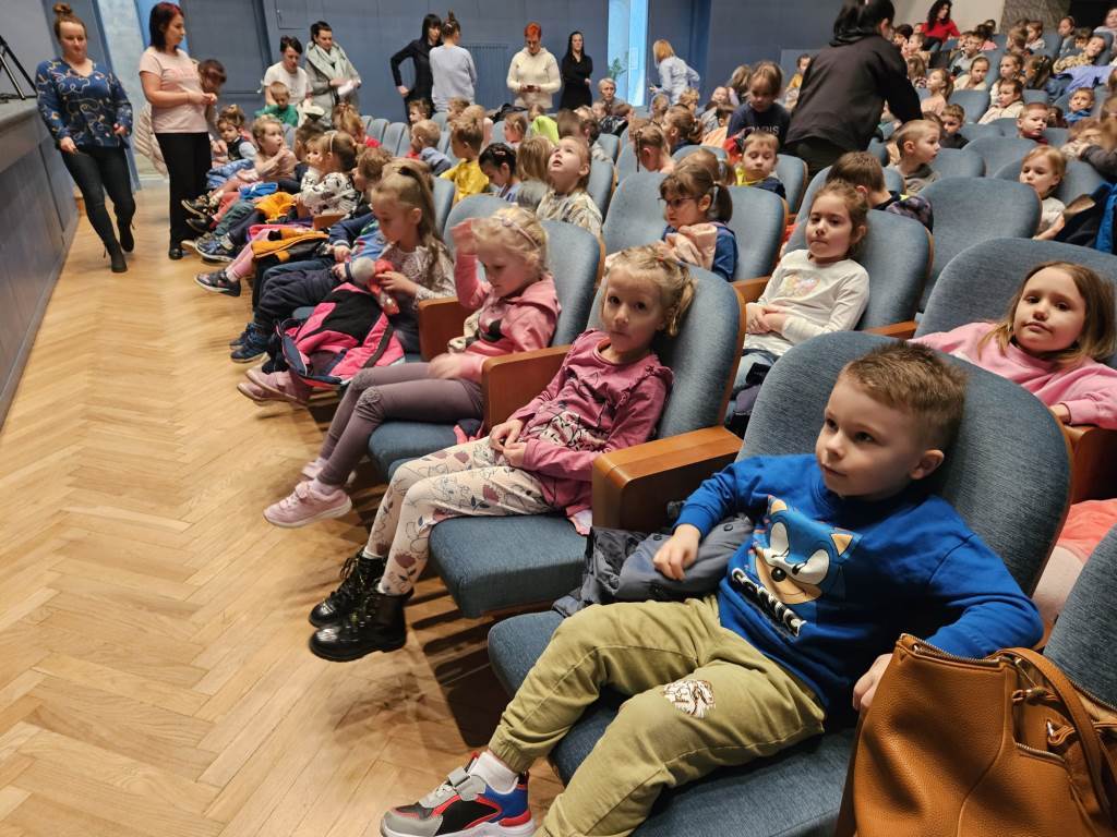 To właśnie do „Brzechwolandii”, aktorzy z Narodowego Teatru Edukacji im.A. Mickiewicza z Wrocławia, zabrali dzieci z naszego przedszkola, podczas wesołego przedstawienia teatralnego pod właśnie takim tytułem, wystawionego na scenie Sanockiego Domu Kultury w dniu 28.02.2024r. .