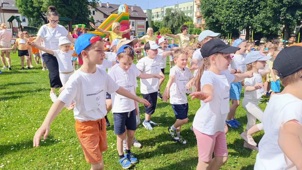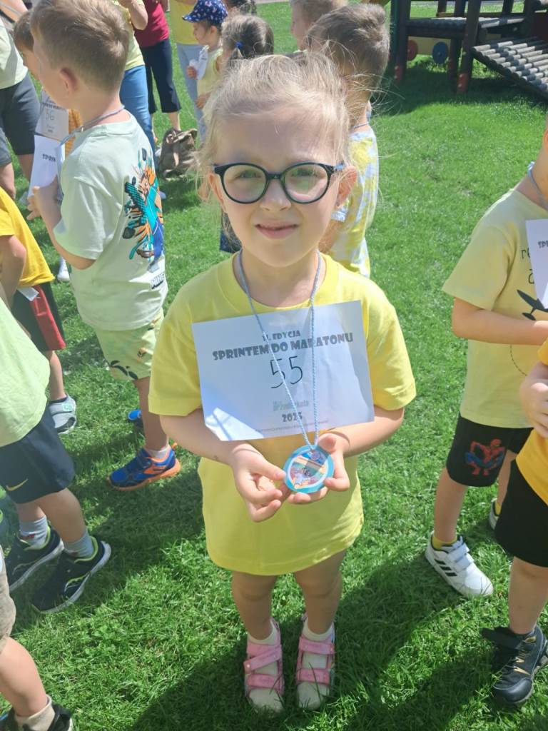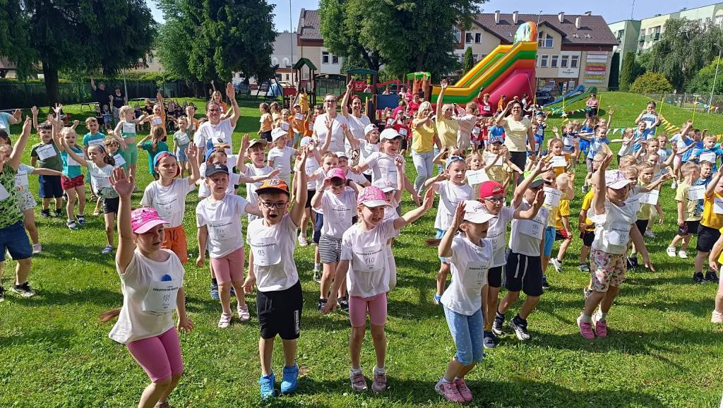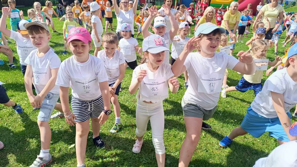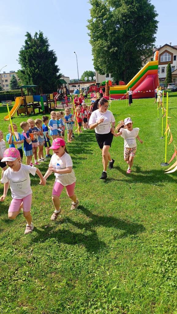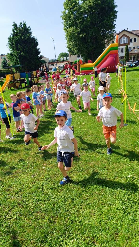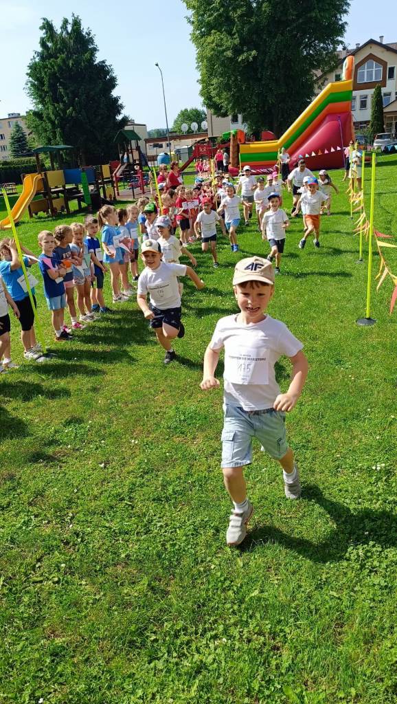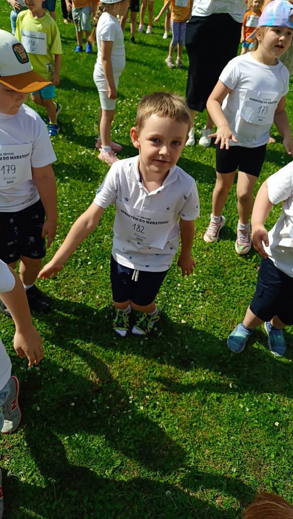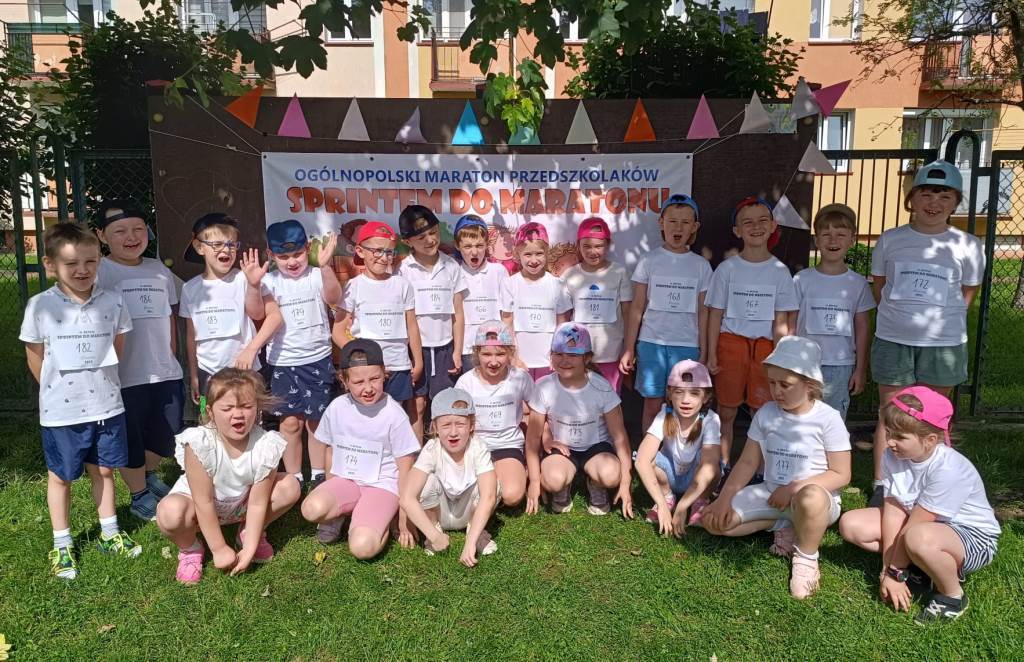 Za nami XI edycja Ogólnopolskiego Maratonu Przedszkolaków „Sprintem do maratonu”. Dla naszych przedszkolaków to już czwarty sprint. „Sprintem do maratonu” to przede wszystkim promocja aktywności fizycznej, zwłaszcza biegania, wśród dzieci. Celem projektu jest zachęcanie dzieci do ruchu i aktywności na świeżym powietrzu, promowanie zdrowego stylu życia i zdrowej, sportowej rywalizacji oraz stwarzanie pozytywnej atmosfery. W tym roku pogoda dopisała i jak przystało na prawdziwe biegi, dzieci otrzymały numery startowe. Zawody rozpoczęliśmy rozgrzewką, aby we właściwy sposób przygotować się do biegania. Następnie każda grupa mogła pobiec tyle okrążeń na ile pozwalały dzieciom siły. Wszystkie przedszkolaki świetnie się bawiły i zgodnie z zasadą „fair play” głośno kibicowały swoim koleżankom i kolegom. Na zakończenie każdy mały uczestnik biegu otrzymał pamiątkowy medal.