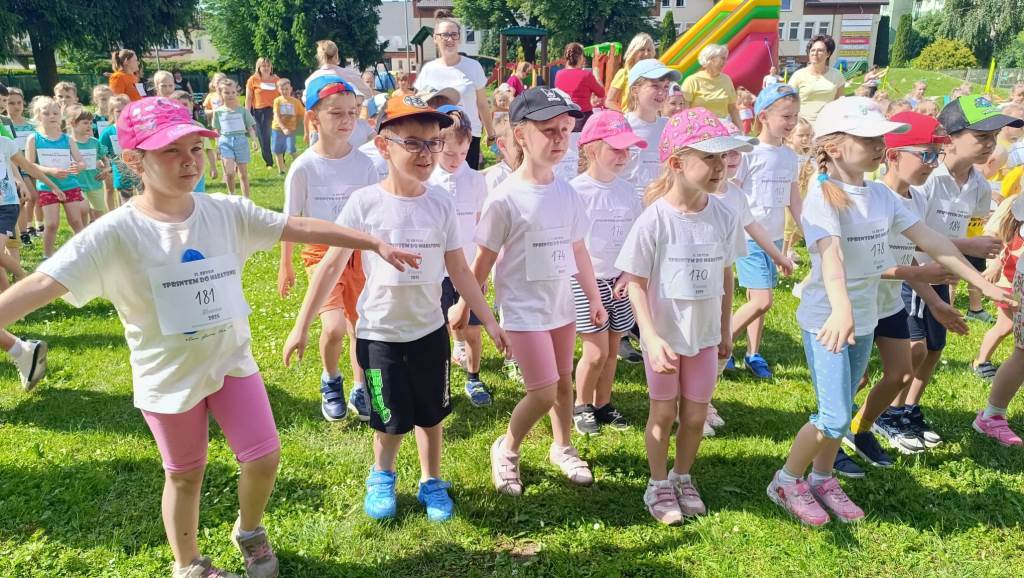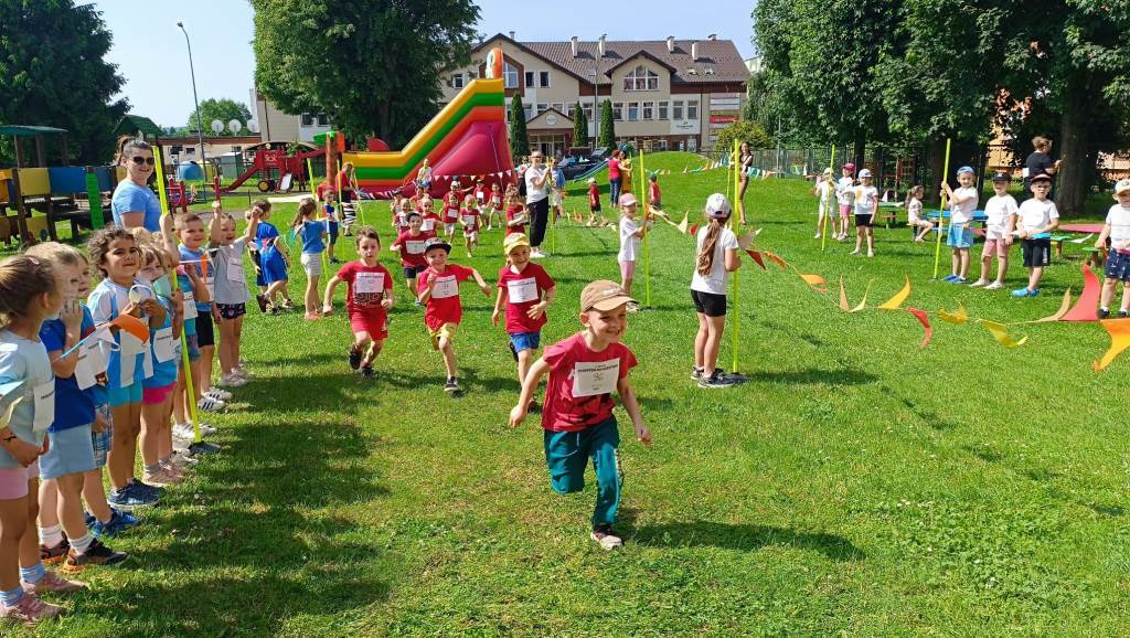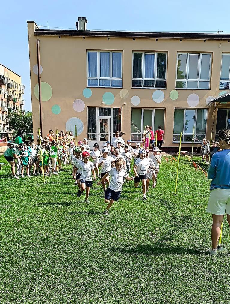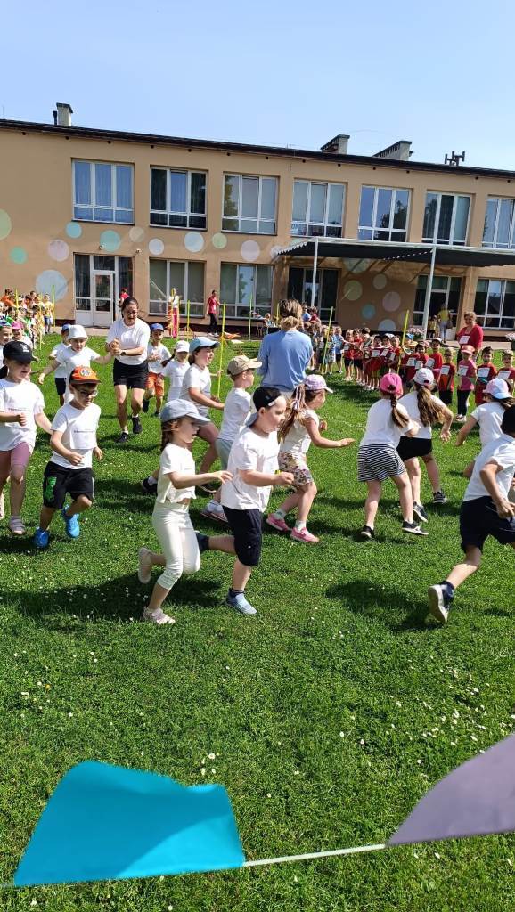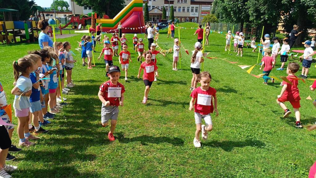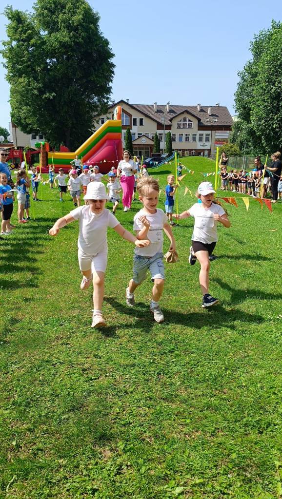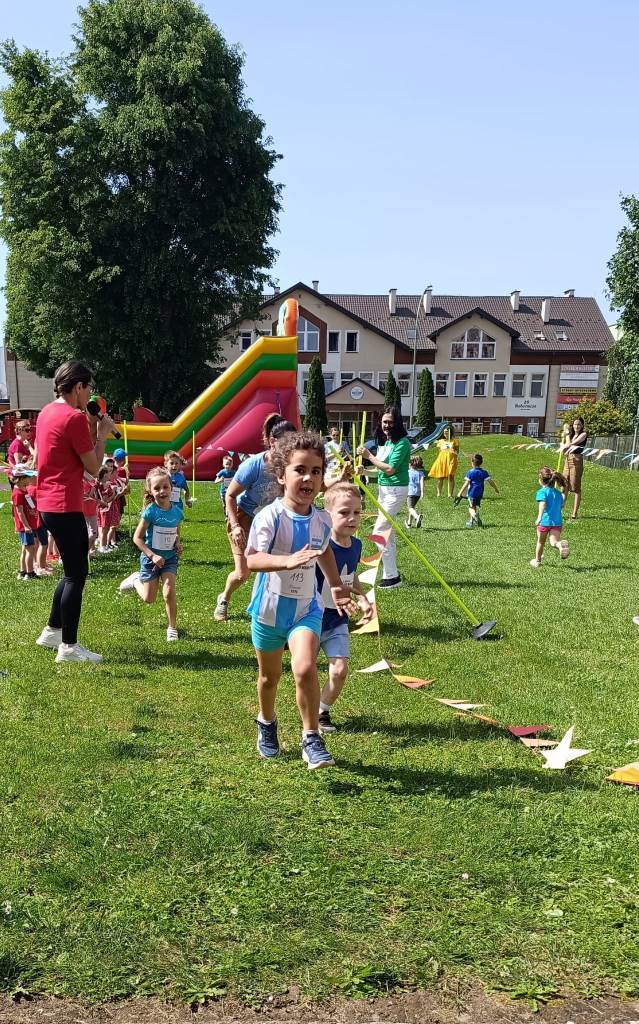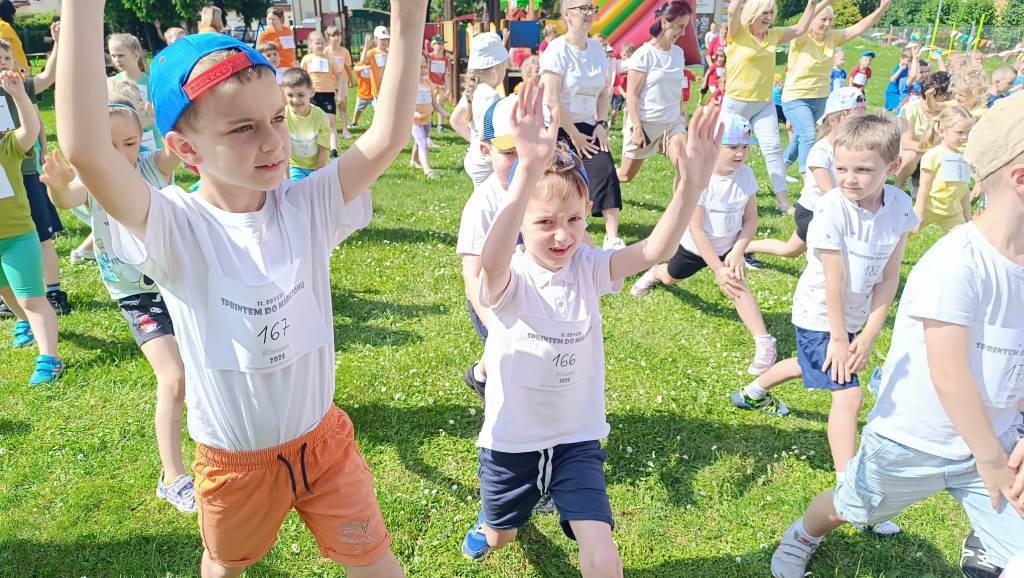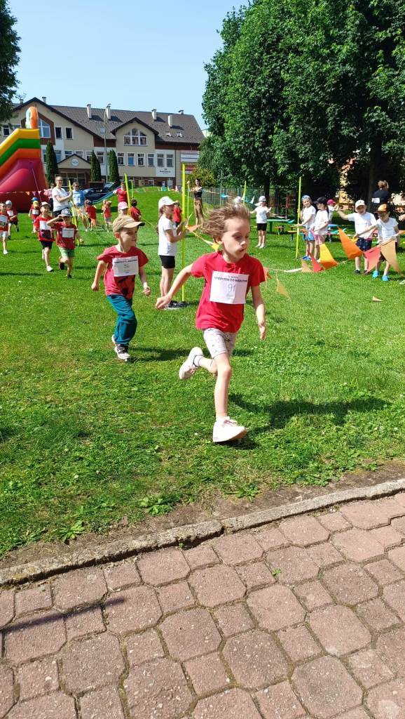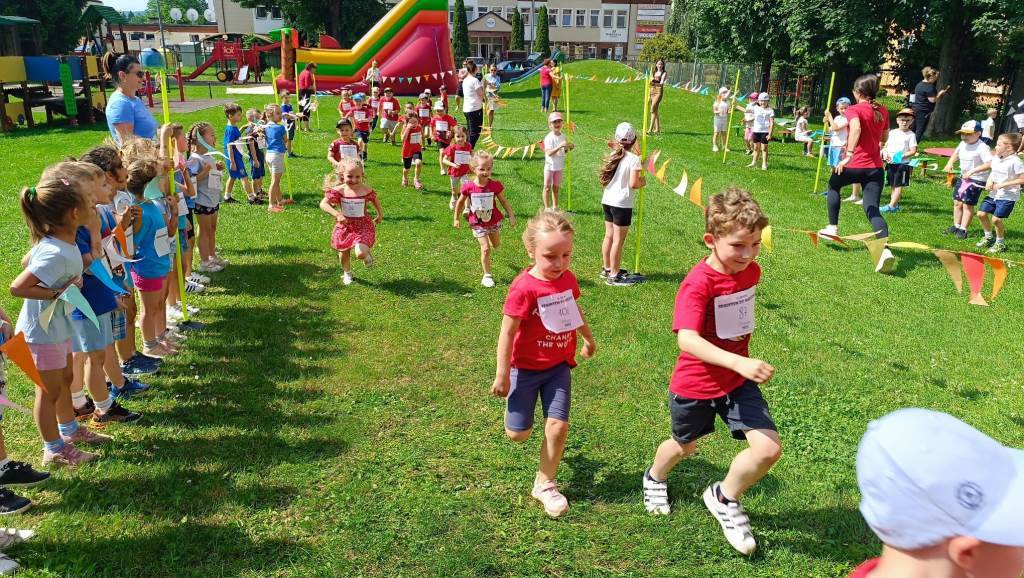 Za nami XI edycja Ogólnopolskiego Maratonu Przedszkolaków „Sprintem do maratonu”. Dla naszych przedszkolaków to już czwarty sprint. „Sprintem do maratonu” to przede wszystkim promocja aktywności fizycznej, zwłaszcza biegania, wśród dzieci. Celem projektu jest zachęcanie dzieci do ruchu i aktywności na świeżym powietrzu, promowanie zdrowego stylu życia i zdrowej, sportowej rywalizacji oraz stwarzanie pozytywnej atmosfery. W tym roku pogoda dopisała i jak przystało na prawdziwe biegi, dzieci otrzymały numery startowe. Zawody rozpoczęliśmy rozgrzewką, aby we właściwy sposób przygotować się do biegania. Następnie każda grupa mogła pobiec tyle okrążeń na ile pozwalały dzieciom siły. Wszystkie przedszkolaki świetnie się bawiły i zgodnie z zasadą „fair play” głośno kibicowały swoim koleżankom i kolegom. Na zakończenie każdy mały uczestnik biegu otrzymał pamiątkowy medal.